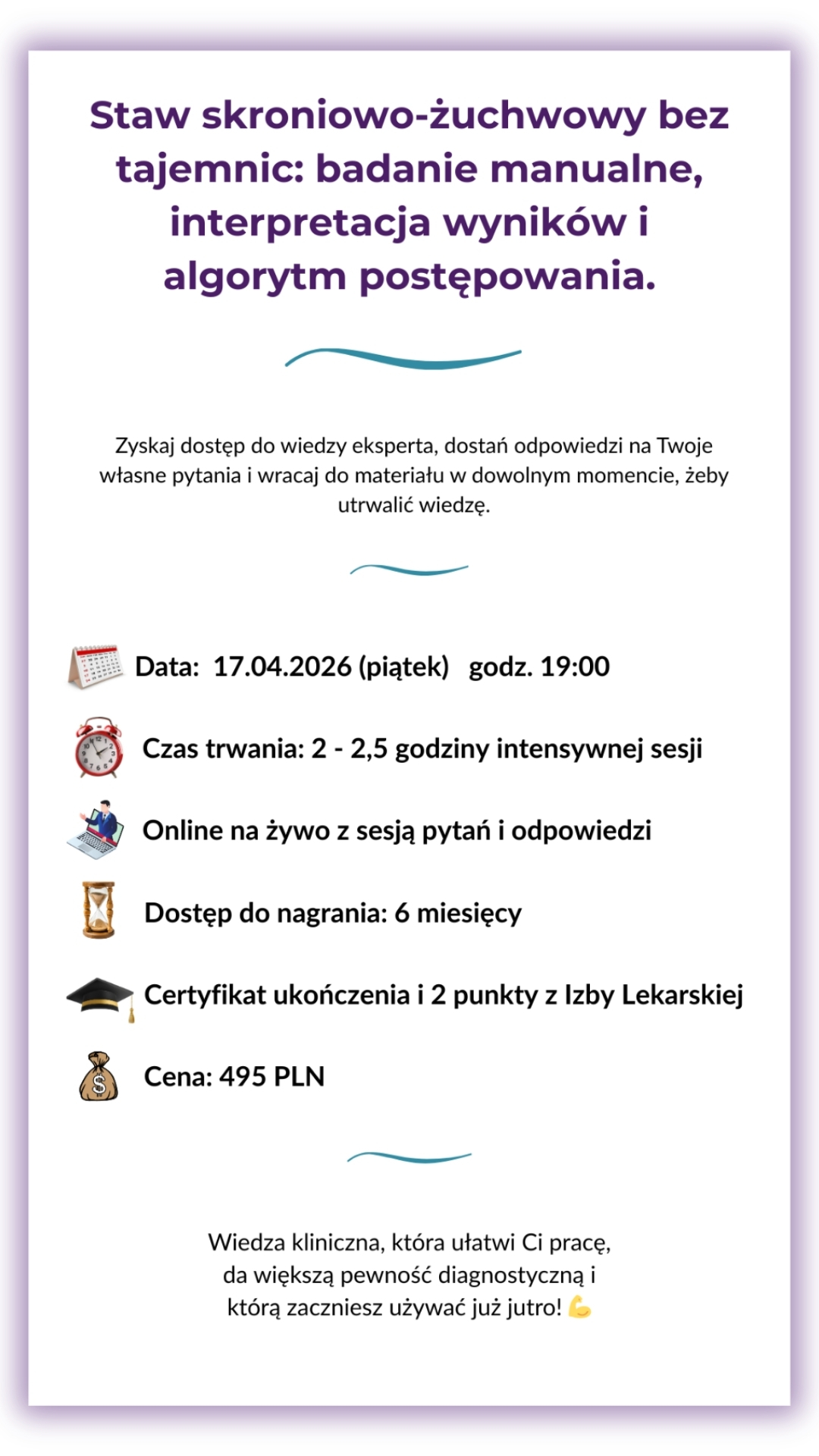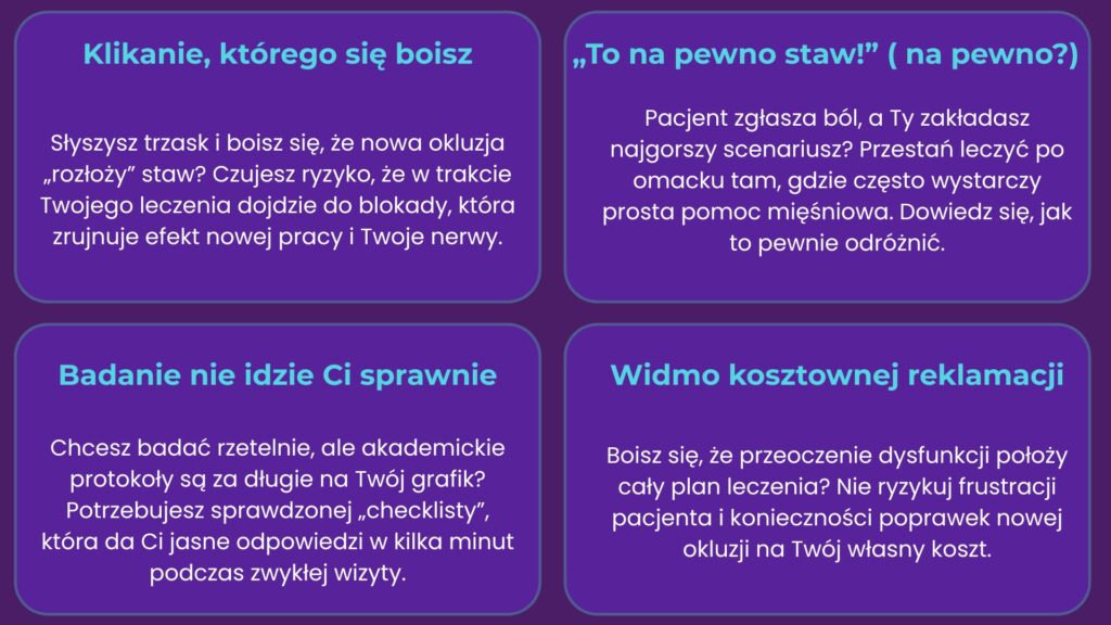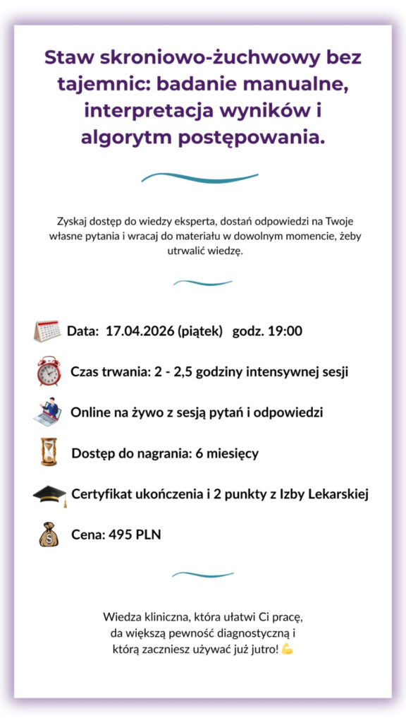 Jeśli kiedykolwiek, słysząc głośne „kliknięcie” w stawie pacjenta podczas badania, poczułeś ten charakterystyczny skurcz w żołądku, zastanawiając się, czy planowane leczenie ortodontyczne lub protetyczne nie rozsypie się za chwilę jak domek z kart… to spotkanie jest dla Ciebie. 💪